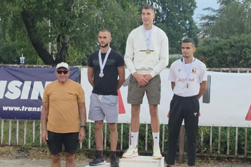 Харманлиецът завоюва златото на дълъг скок с резултат 8.12 метра.