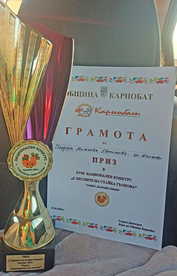 Най-голямата награда на Националния фолклорен конкурс „С песните на Стайка Гьокова “ отново пристигна в Хасково.