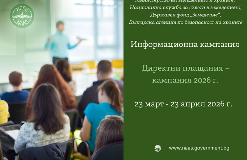 Национална информационна кампания за директни плащания 2026 г. организира Министерството на земеделието и храните в страната.