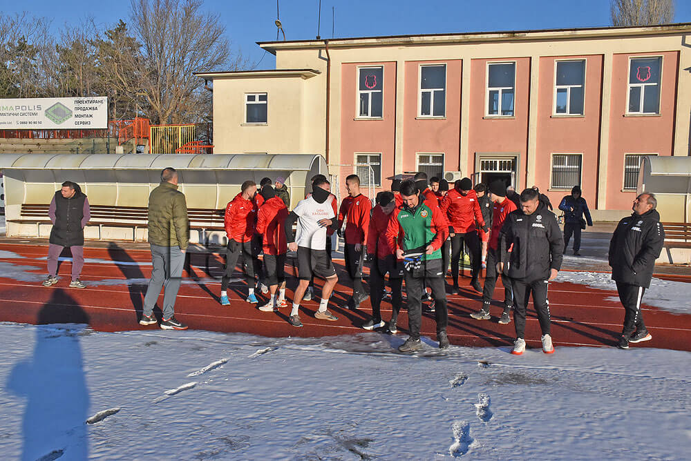 Те проведоха занимание на заснежения стадион „Хасково“. През следващите дни подготовката ще продължи на стадион „Младост“.
